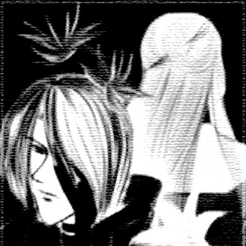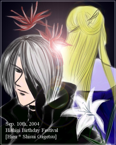 [ひしぎ誕生祭2004]様に投稿させて頂いたもの。 ひしぎと言えば世間一般では吹ひしが王道ですが、 私の中で当時一番印象深かったのが、村正様との擦れ違いシーンだったので。 当時「正妻VS愛人!?」なんぞと騒いでいた記憶があります。 何気に雰囲気が出ているとコメントを頂いた、モノトーン加工Ver.は此方↓