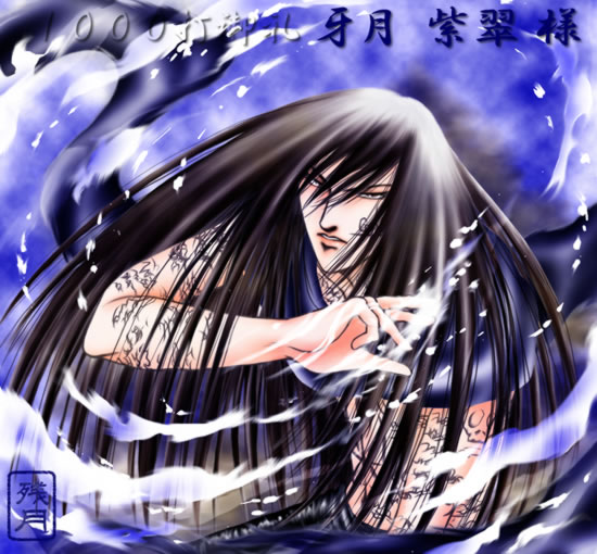 『水系の攻撃を仕掛ける真達羅を』という牙月のリクに、躍動感と落ち着きを兼ね備えた、格好良いイラストを頂けて歓喜するばかりです。